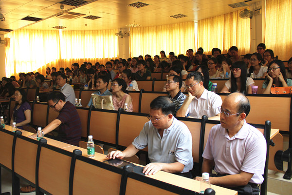 温宾利为新生作了主题为“怎样做研究”的讲话。他首先分享两个关于时间和空间的短片,指引学生们思考“什么是研究”、“怎样去研究”这两大问题。他反复强调了创新能力对于研究的重要性,教导新生如何做研究。“做研究应具备质疑精神,不要总相信别人是对的,要在大量阅读的基础上,发挥自己的想象力,提出独有的理论。Make something out of nothing!”最后,温宾利向研究生新生提出了几点建议,叮嘱他们要多读书,注重英语水平,同时还要学会做人,保持身心健康。