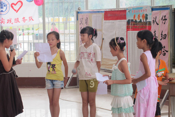 本网讯 7月27日,作为夏曦队“三下乡”义教的最后一项活动安排,夏曦服务队文艺汇演及告别会在石牯塘初级中学教学楼大厅举行。参加这次义教活动的全体学生经过了之前的准备,尽情地在舞台上向台下的“小老师”展现自己的风采,“戏剧大赛”、“动力火车”、“歌曲演唱”等内容毫不亚于大学里的文艺汇演。