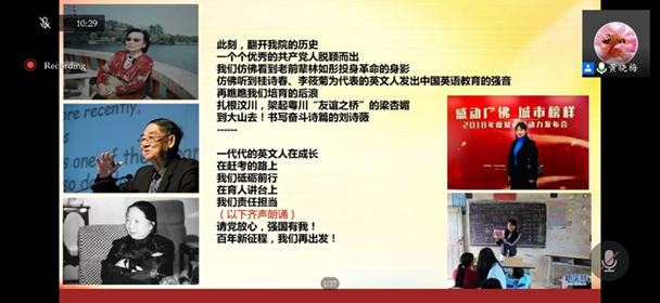 在红色故事分享环节,行政党支部党员首先为中国共产党成立100周年献上配乐诗朗诵《请党放心,强国有我》,抒发了英文学院全体师生继往开来,为祖国书写奋斗诗篇的责任担当和郑重承诺。