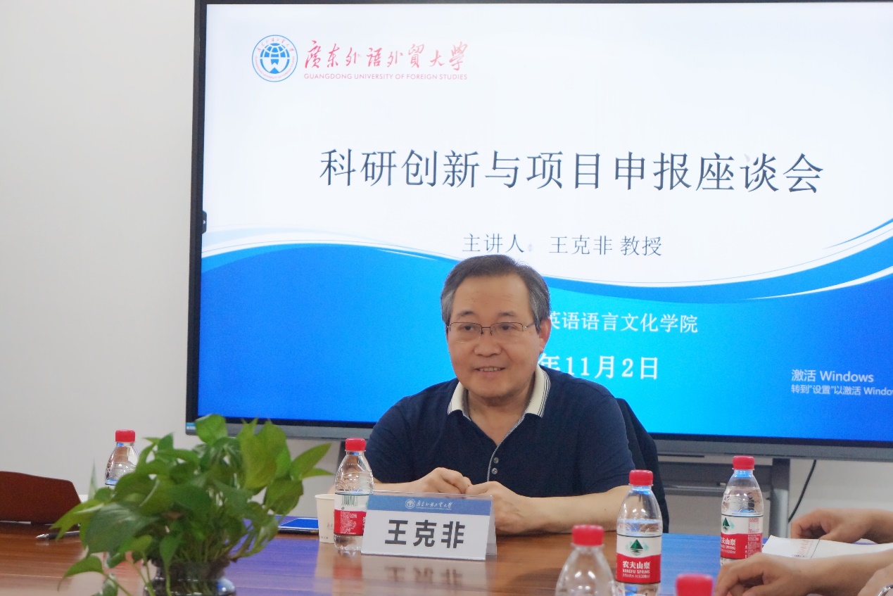 本网讯 2023年11月2日下午,beat365唯一官方网站主办的科研创新与项目申报座谈会在一教北楼446室顺利举行。本座谈会由学报《外语教学与研究》主编、国家社科基金评审专家王克非教授主讲,英文学院方开瑞教授主持,主题为“科研创新与项目申报座谈会”。王教授结合个人学术经历和工作经验,分享了外语学科发展历史、科研创新和项目申报注意事项。