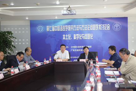 本网讯 2018年4月14日至15日,由《中国社会科学》编辑部和广东外语外贸大学联合主办的第七届中国语言学研究方法与方法论问题学术讨论会在广东外语外贸大学北校区召开,会议主题是“语言学研究的本土化、科学化和现实问题化”。广东外语外贸大学党委书记、校长隋广军教授,中国社会科学杂志社副总编辑、中国社会科学网总编辑罗文东研究员致辞。中国社会科学院、北京大学、北京语言大学、首都师范大学、中国人民大学、武汉大学、江苏师范大学、广东外语外贸大学等单位30多位专家学者出席会议。广东外语外贸大学英文学院院长温宾利教授主持开幕式,党委书记王斌出席开幕式。