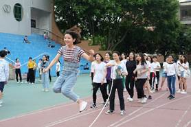最后一个比赛项目是“Jump Jump Jump Rope Skipping”。参赛队伍显然都是有备而来,摇绳的队员精确掌握摇绳的频率,跳绳的队员个个身轻如燕,换人节奏紧凑,配合十分默契。由18级5个班的同学组成的“FELC WIN”队,在限时2分钟内跳绳93次,夺得该项目第一名,赢得观众阵阵喝彩。