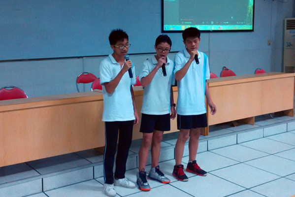 紧接着,激动人心的电影配音环节开始了,由于初中生的英文水平有限,语音语调教学组为学生们选取了《卑鄙的我》和《时时刻刻》的两个相对简单的片段。早在前几天,学生们就已经开始了早读,反复地练习自己的部分,只求在赛场上能一展风采。