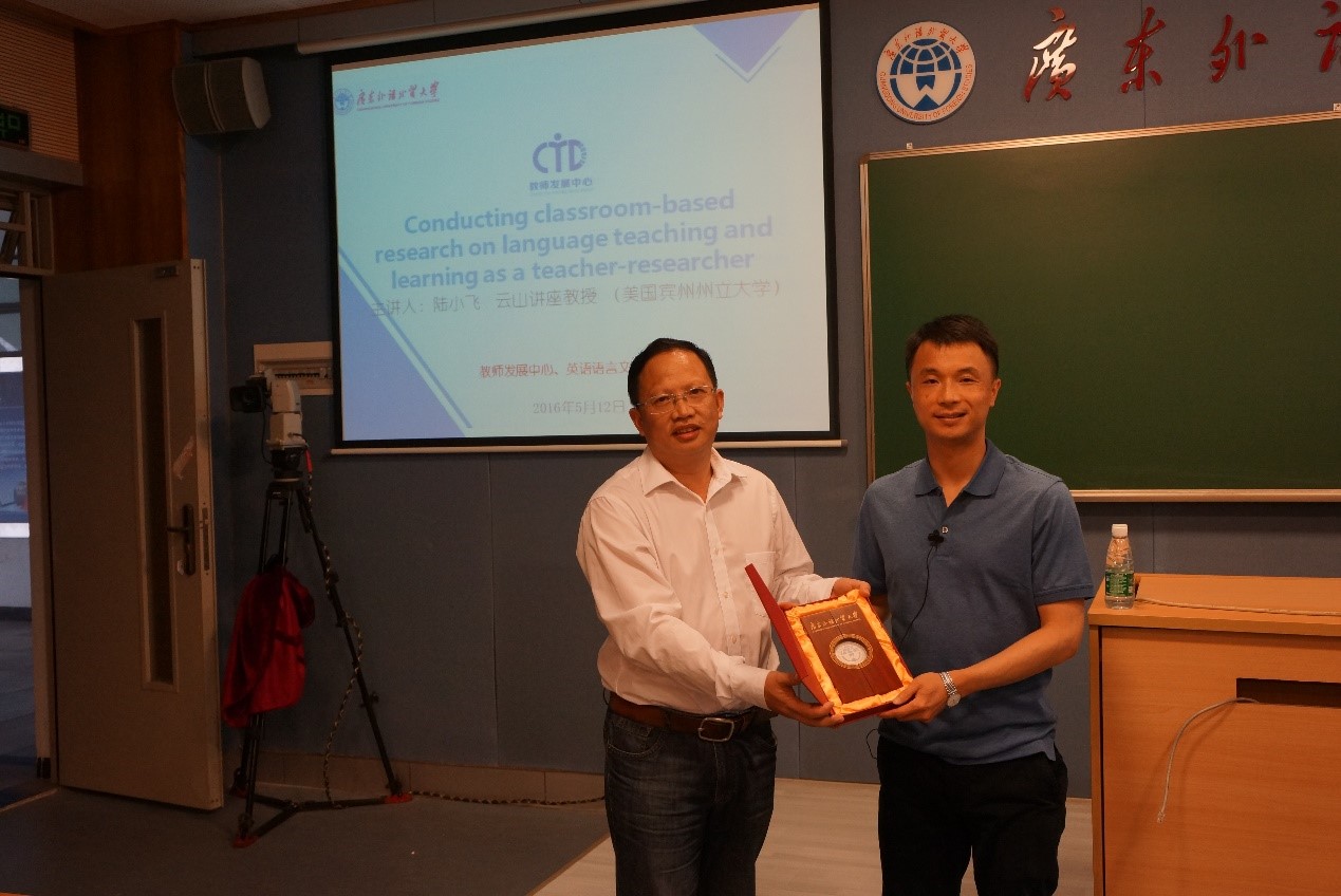 本网讯 5月12日,应beat365唯一官方网站的邀请,我校云山讲座教授陆小飞在六教A209为我校师生作了一场以“Conducting classroom-based research on language teaching andlearning as a teacher-researcher”为主题的学术讲座,这是著名教授论坛第297讲。讲座由beat365唯一官方网站李金辉博士主持,我校多名师生出席了本次讲座。